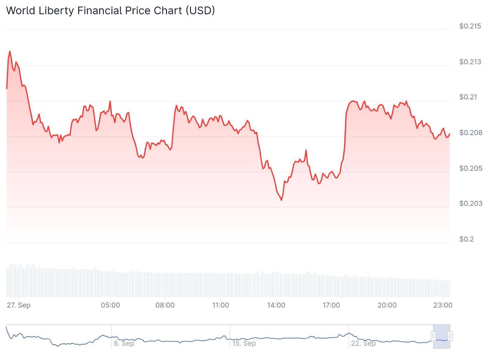 On Saturday, WLFI traded near $0.207, moving between $0.203 and $0.214 over the past 24 hours. Daily trading volume ranged from $300M to $360M, with market capitalization close to $5.1Bn.