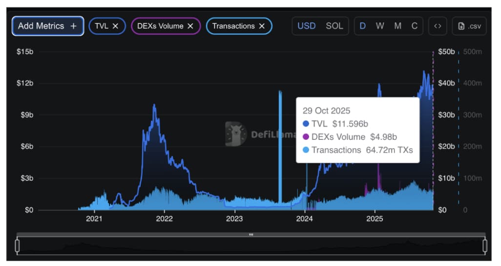 The volume of the DEX was approximately 3.9 billion every day, and the total for the seven days amounted to approximately 28-31 billion. That indicates excellent liquidity levels and continued engagement within the trading ecosystem of Solana.