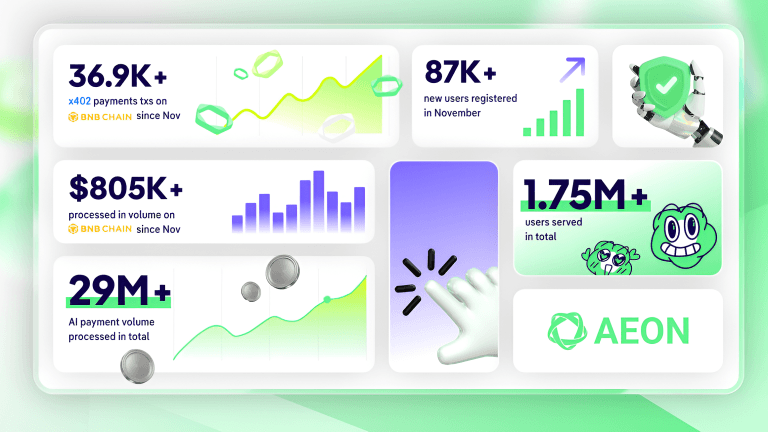 This content is provided by a sponsor. PRESS RELEASE. AEON, the foundational payment & settlement layer for the new AI economy, today released new transaction data that emphasizes the growing demand for AI payments and on-chain settlement. As of November, AEON has processed over 994,000 transactions and more than $29 million in volume, serving 1.75 […]