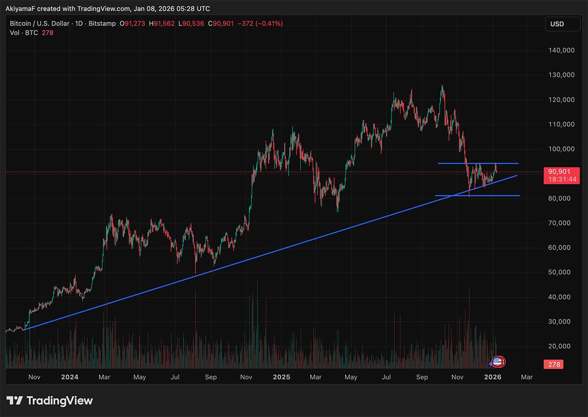 Honestly, crypto feels deliberate as BTC USD drops again to under $91,000, as the range itself is getting wider, and it somehow says where the market stands right now. After an early-year rally of a good 8%, BTC USD is holding its ground. Ethereum, though, is following as it holds above the $3,100 price level, as it finally printed a red candle after six straight green days.