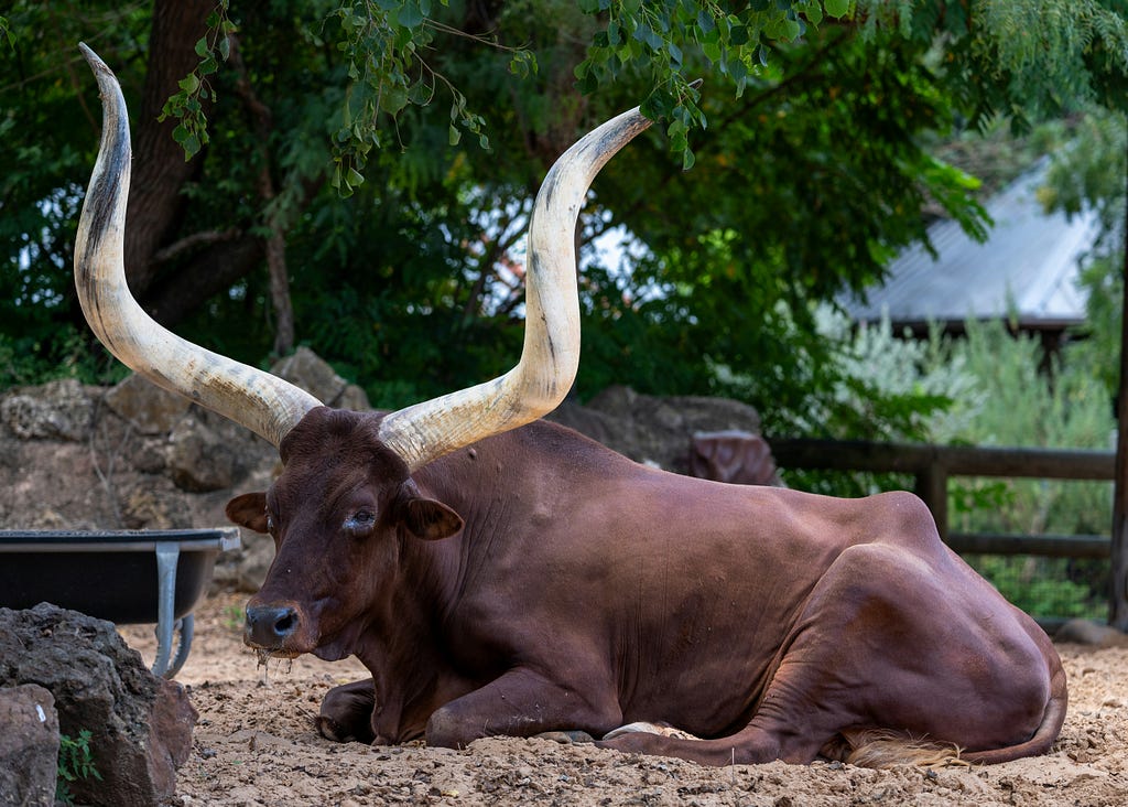 Lazy new bull seems to be somewhat weighed down, perhaps by the weight of some unusually enormous horns?
