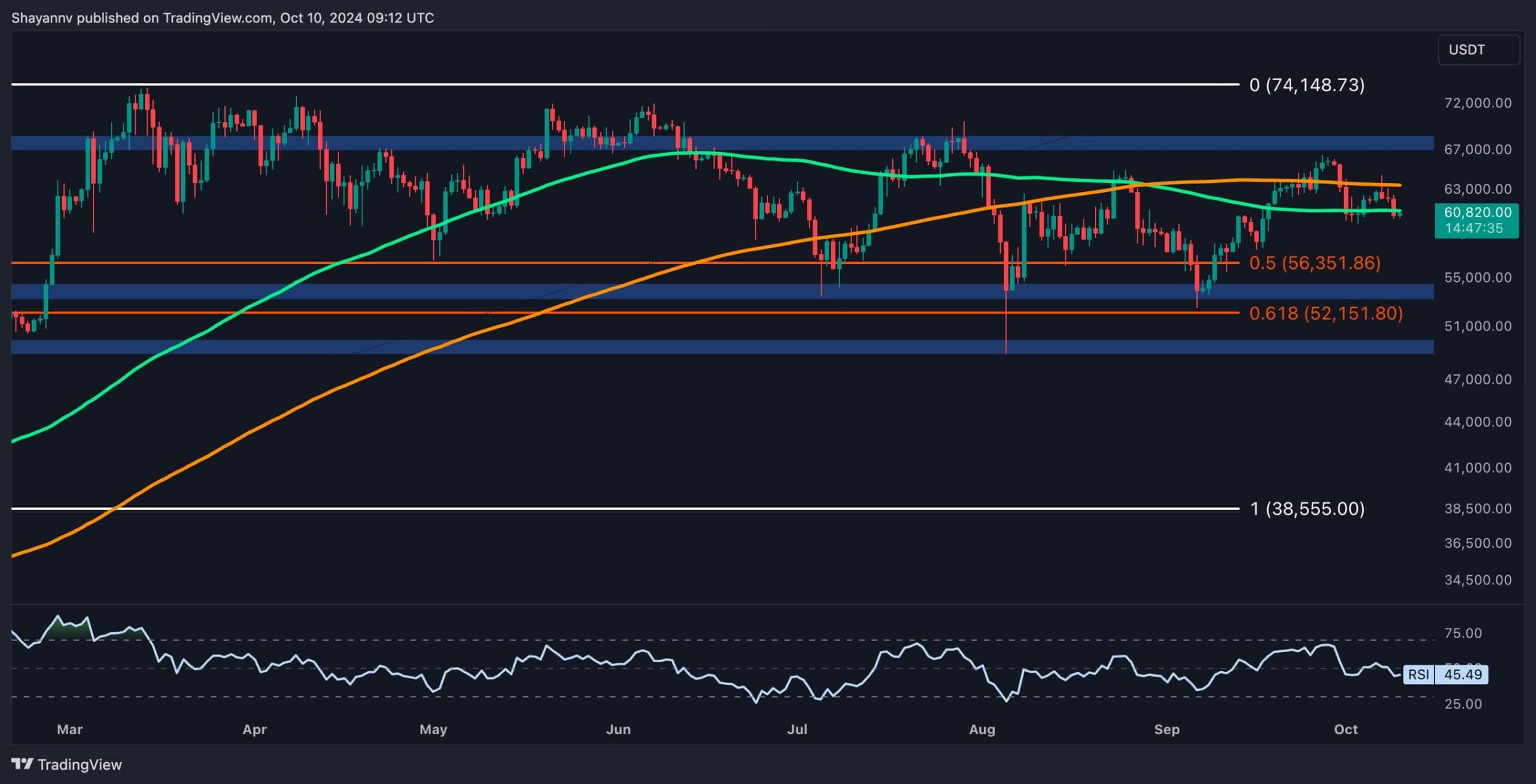 If the price fails to hold the $60K support, the likelihood of a mid-term decline toward the $52K-$55K zone increases.