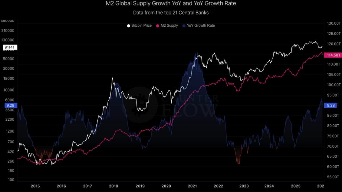A Look at Global M2 Money Supply and Bitcoin. Source: bitcoincounterflow.com