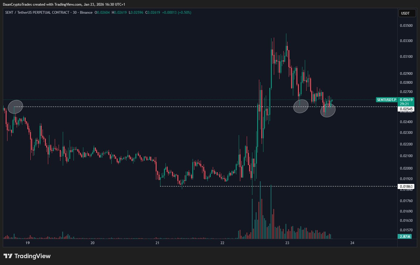 Coinbase added SENT futures, not the SENT token itself. A futures contract lets you bet on a price without owning the coin, similar to locking in today’s price for a future delivery.