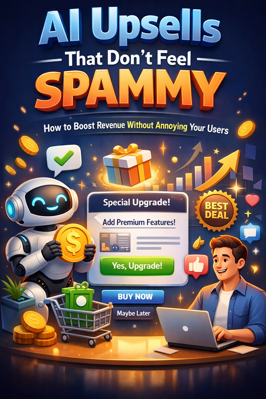 Map out natural upsell points in your user journey.Use AI to personalize recommendations without being intrusive.Test frequency and timing to avoid fatigue.Focus on helping users, not just making sales.Continuously optimize based on data and feedback.
