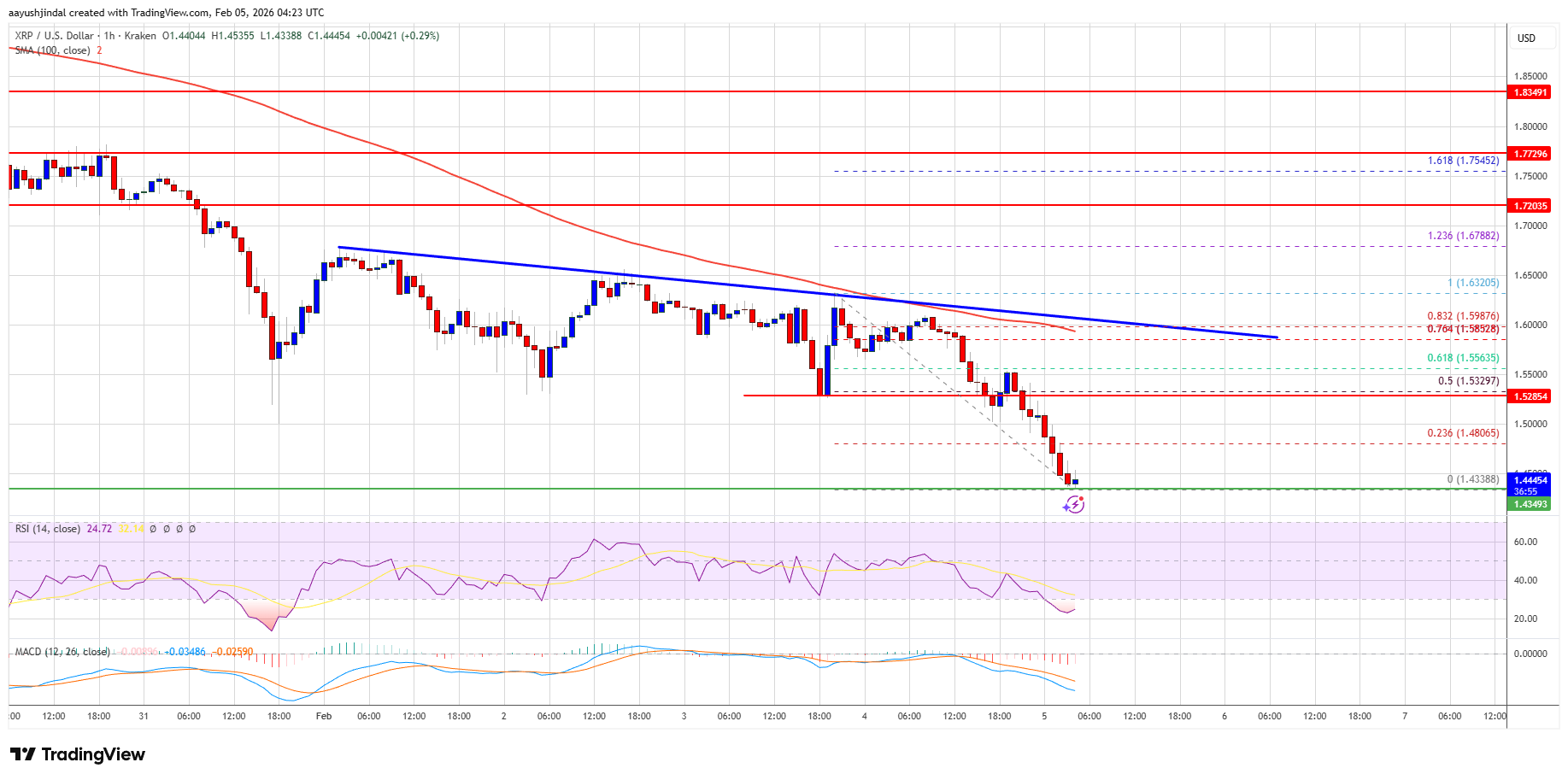 The price is now trading below $1.50 and the 100-hourly Simple Moving Average.