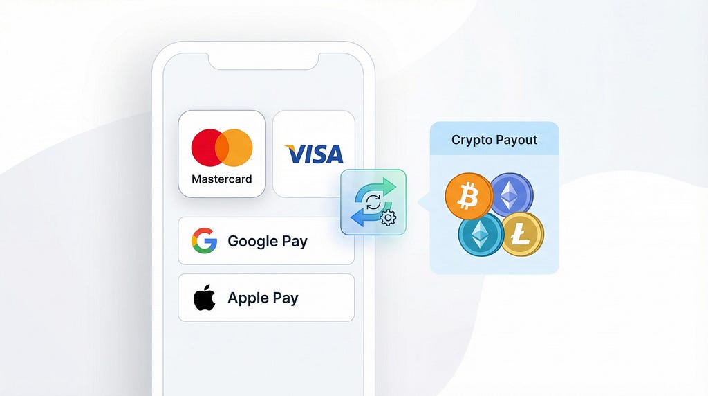 If you run an online business in 2026, there is a good chance you have encountered this exact problem: you want to accept standard card payments from your customers — Visa, Mastercard, Apple Pay, Google Pay — but you want your settlement in cryptocurrency. Maybe you operate in a region where traditional banking rails are unreliable. Maybe you want the speed of stablecoin settlement instead of waiting three to five business days for a bank wire. Maybe you simply do not want to deal with the bureaucratic overhead of legacy payment processors that demand extensive documentation before you can accept a single dollar.
