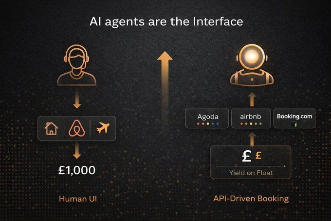 In Web2 travel, that float is largely wasted from the user’s perspective. Platforms monetize by taking bigger fees. The settlement system is static.