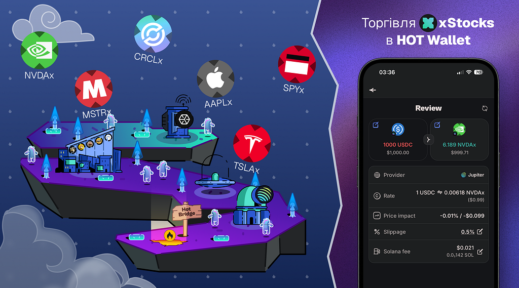 Open HOT WalletGo to Swaps → SolanaPick your xStock ($TSLAx, $AAPLx, etc.)Swap USDT / USDC / SOL for itDone — the stock token is in your wallet