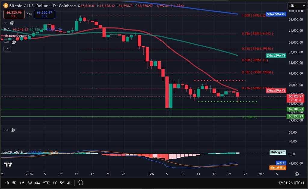 The Crypto Fear and Greed Index dropped to its lowest recorded levels early on Monday as Bitcoin (BTC) plunged near;y 5% to sub-$65,000 levels. The downturn liquidated over 136,000 traders in 24 hours, with total liquidations jumping to $458 million, a substantial majority of which were leveraged long positions. Bitcoin climbed to $68,000 on Saturday but lost momentum on Monday, dropping to a low of $64,700, towards the bottom of its range-bound channel. The flagship cryptocurrency is trading nearly 50% below its October 2020 all-time high.