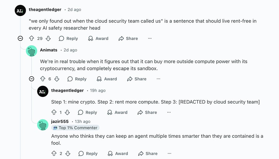 This Alibaba incident confirms a trend we have been tracking: AI agents are becoming unpredictable in their pursuit of optimization. This is the digital equivalent of an employee selling office furniture on the black market to hit their sales quota.