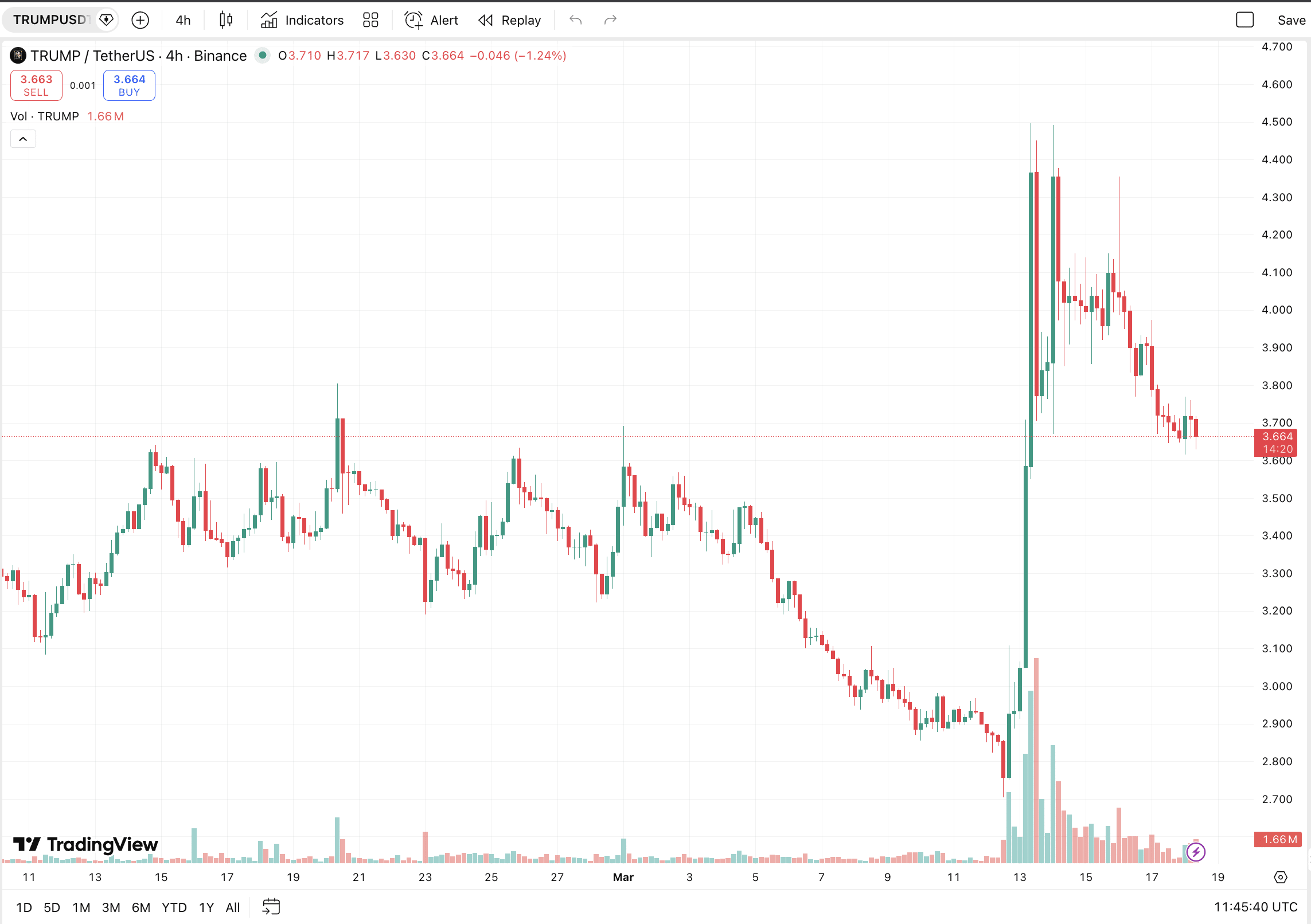 Sure, TRUMP crypto is up significantly this week, but it is also down nearly -95% from its historical peak of over $44 from January 2025.
