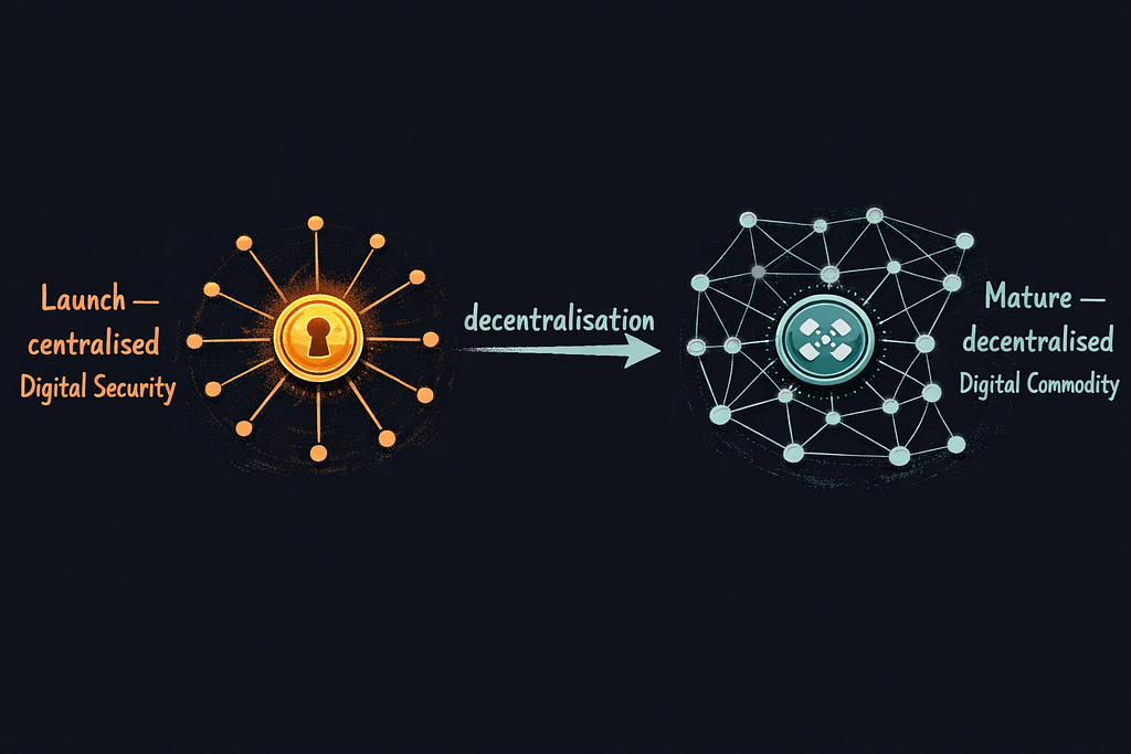 Under the joint SEC/CFTC interpretive release issued on March 17, the framework formally addresses how a token may become subject to investment contract rules — and, crucially, how it may cease to be subject to them. A token launched during an initial offering — when the network is centralised, when a small group controls it — can qualify as a digital security at that stage. That same token can transition to a digital commodity as the network decentralises and control disperses.
