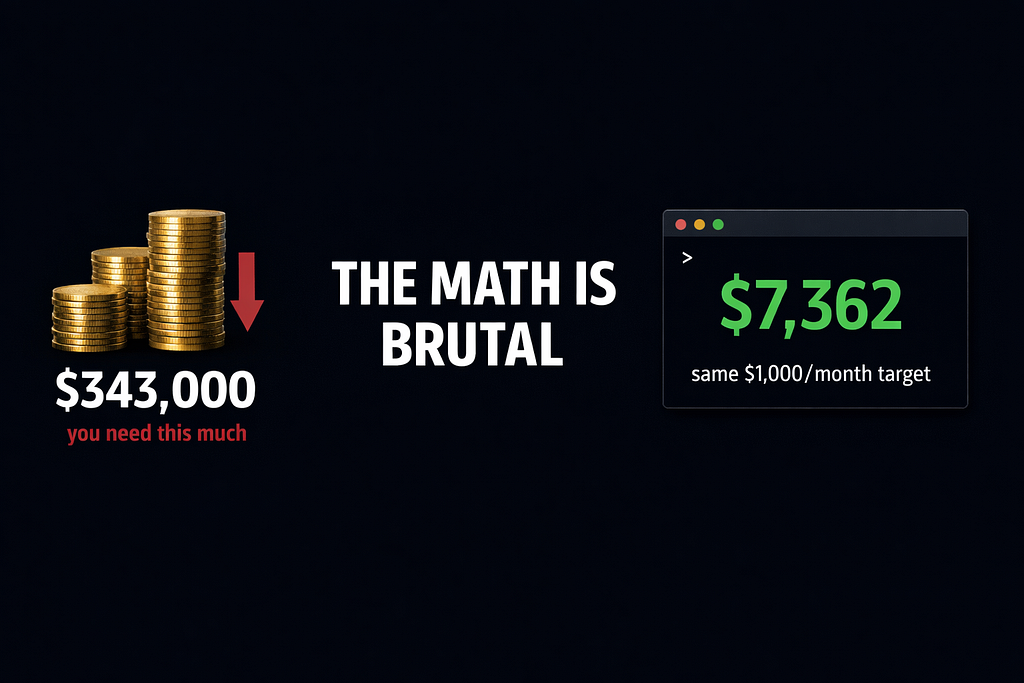 $7,362 versus $343,000. Same monthly income target. Completely different capital requirement.