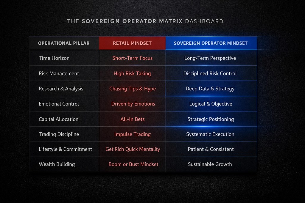 Retail traders attempt to “catch up” by increasing leverage, walking directly into the Logarithmic Trap. They become the liquidity for institutional rebalancing, exiting the market exactly when the Sovereign operators are beginning to accumulate.