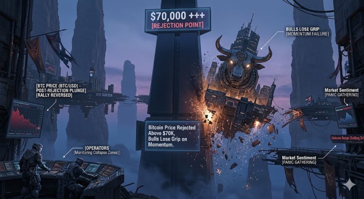 The price even climbed above $70,000 but failed to remain in a positive zone. A high was formed at $70,463, and the price started a downside correction. There was a move below the 23.6% Fib retracement level of the upward move from the $65,688 swing low to the $70,463 high.