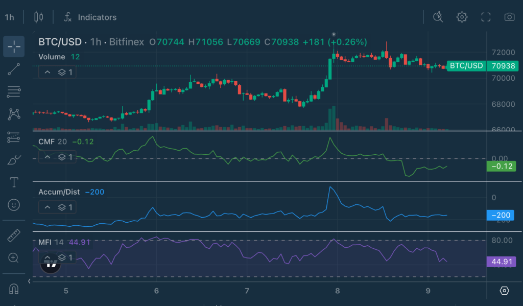 MFI tells you short-term momentum has cooled. A/D shows that while there was a strong burst of accumulation during the breakout, it is now stabilising. CMF dipping slightly negative is the key shift.