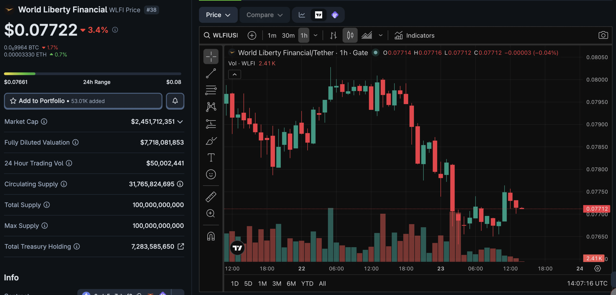 $WLFI sits at $0.0772, a modest -3.4% slip over 24 hours. The token’s tradability has been complicated since September 1, 2025, when sales were formally enabled. Sun’s lawsuit claims the blacklisting of his wallet prevents him from realizing value on a position worth over $1Bn at peak prices.
