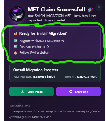 👉 @michionsolana on X — Official migration claim link in pinned post