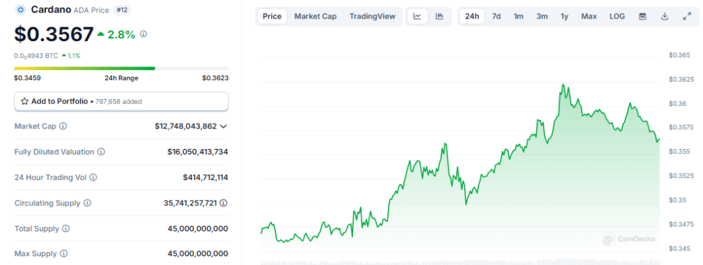 The Cardano market (ADA) is now at a crossroads, going through tough times with the cryptocurrency market heating up. Despite the latest $73,000 mark that Bitcoin had attained today, the Cardano trade is losing its way forward, at the current time trading at $0.356.