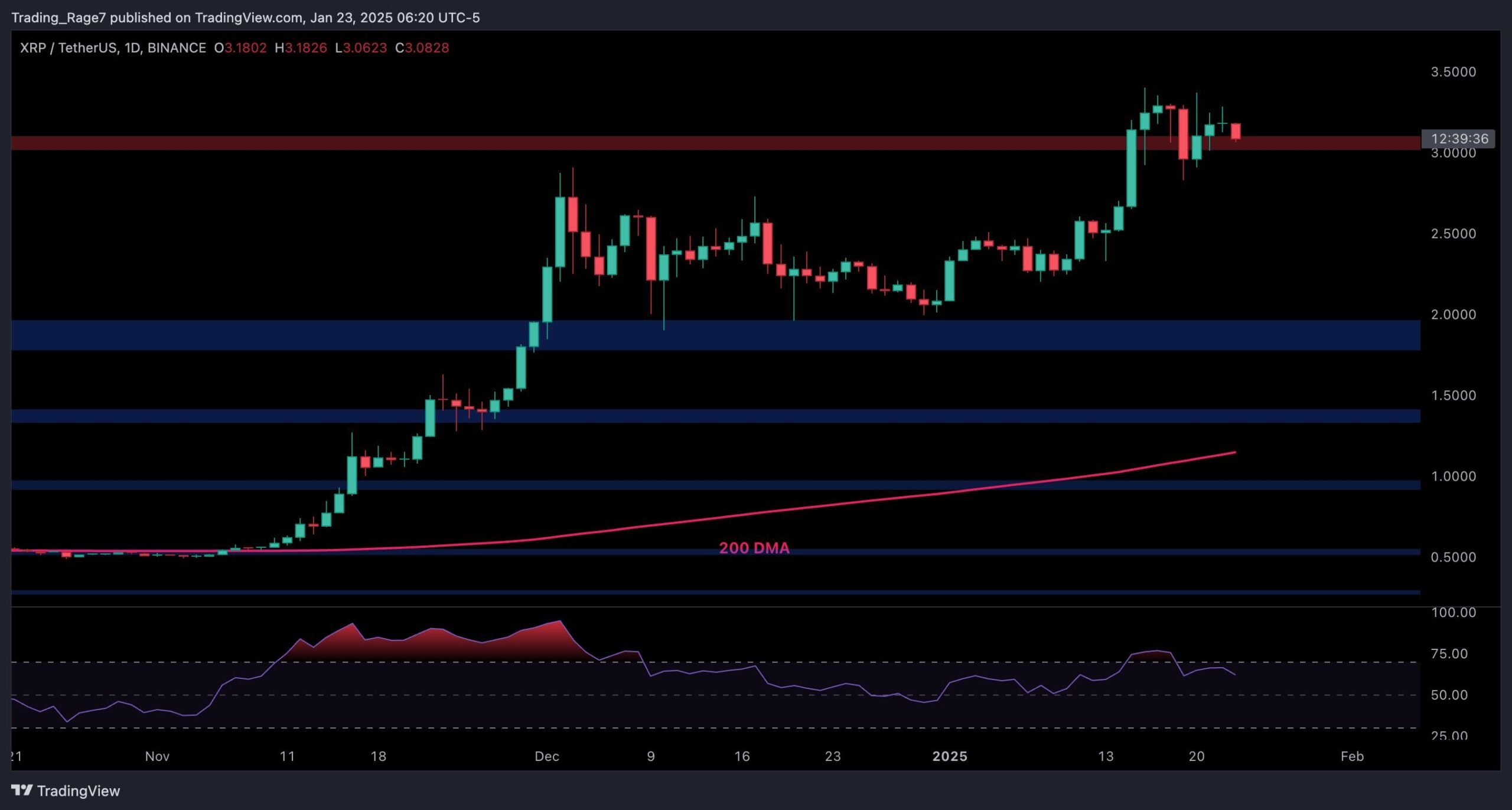 Currently, the market is trying to maintain above the $3 resistance level. If successful, a record-breaking rally could begin for XRP. However, a drop back toward the $2.5 mark and even the $2 support level would be likely in case of a bearish rejection.