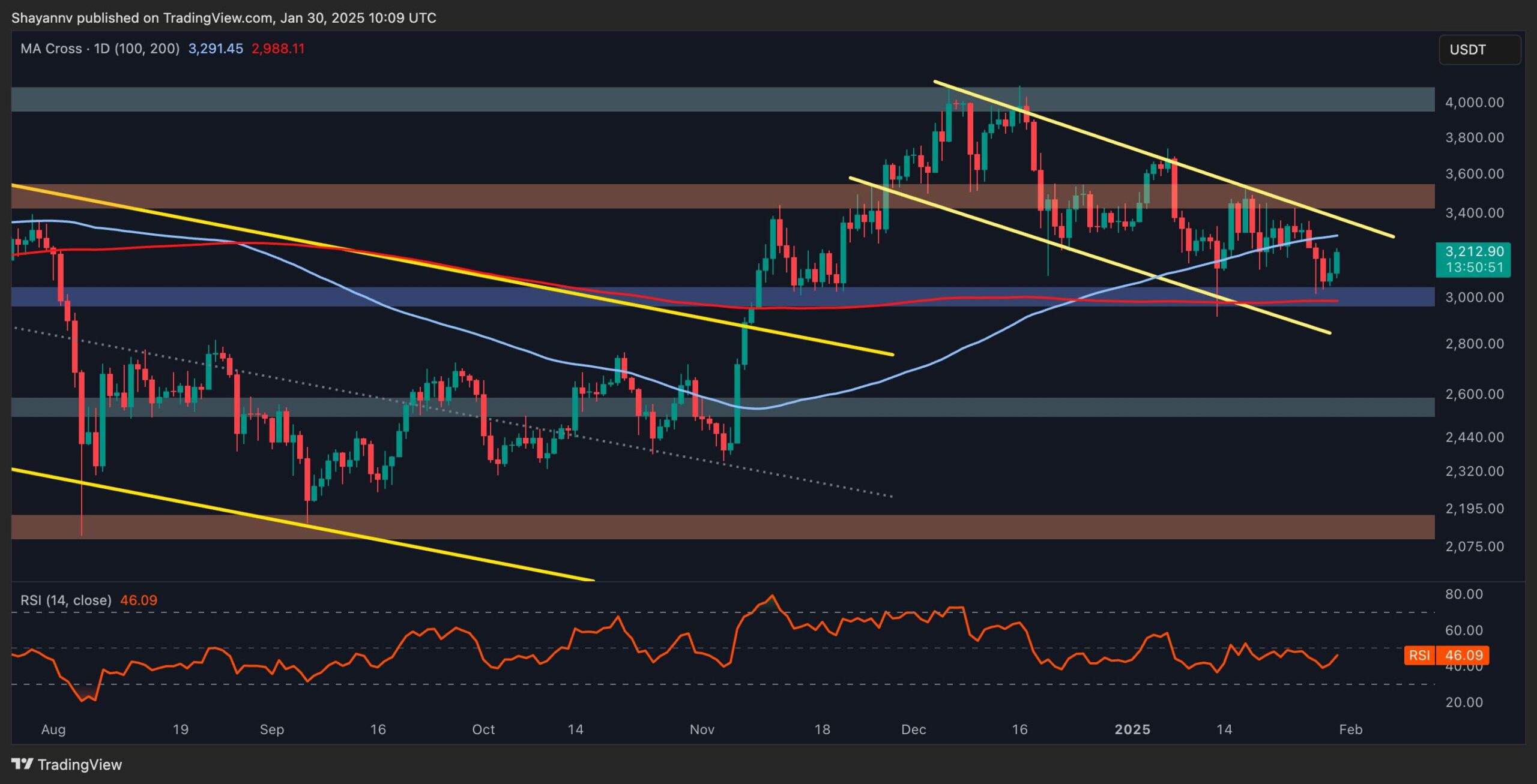 However, ETH remains confined between the 100-day MA at $3.3K and the 200-day MA at $3K. A decisive breakout from this range will determine the cryptocurrency’s next major move.