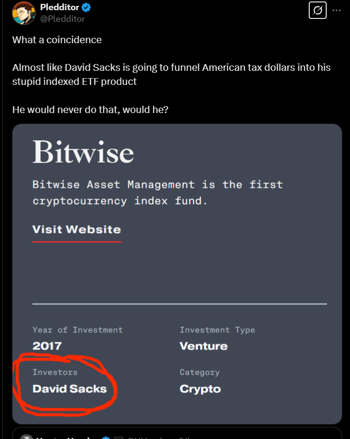 Correct. I sold all my cryptocurrency (including BTC, ETH, and SOL) prior to the start of the administration. https://t.co/dN6nuGQUtu