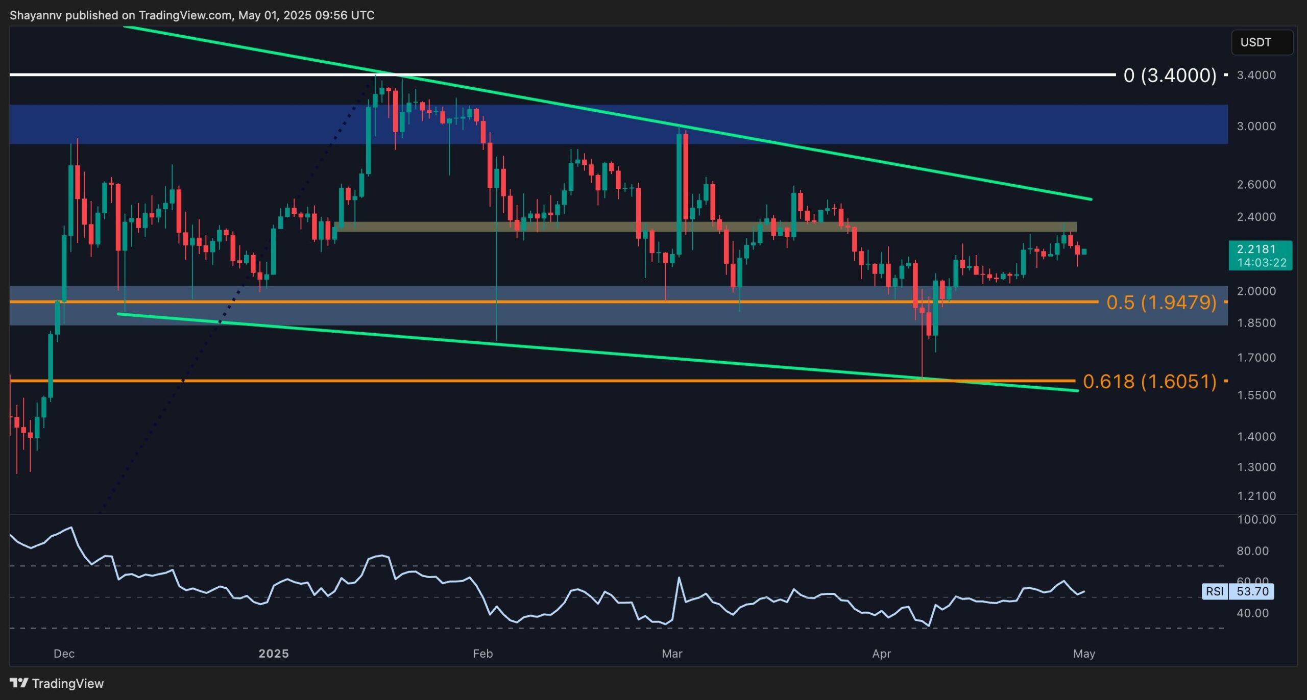 This confluence of factors points toward a high probability of a retracement toward the $2 psychological level in the near term. Should demand fail to re-enter around this zone, deeper corrections could follow. However, if buyers step in with conviction, this region may serve as a launchpad for another breakout attempt toward $2.6 and beyond.