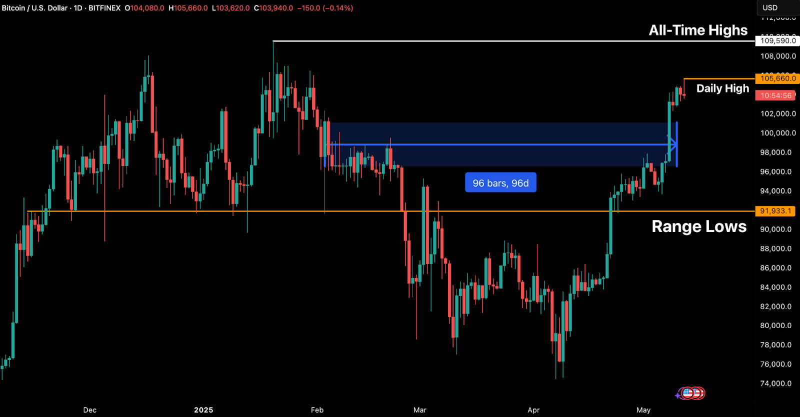 Sau hơn ba tháng án binh bất động, Bitcoin đã chính thức giành lại mốc $100,000, thể hiện sức mạnh tái sinh. Sự phục hồi này diễn ra sau khi giá giảm 32% từ mức đỉnh lịch sử vào tháng Một. Được thúc đẩy bởi những yếu tố vĩ mô tích cực – như căng thẳng thuế quan hạ nhiệt và Fed bắt đầu tỏ ra dễ chịu hơn trong giọng điệu chính sách (dovish) – sự bứt phá của Bitcoin phù hợp với xu hướng mạo hiểm chung của thị trường và thậm chí còn vượt mặt cả cổ phiếu trong cuộc đua lợi nhuận.