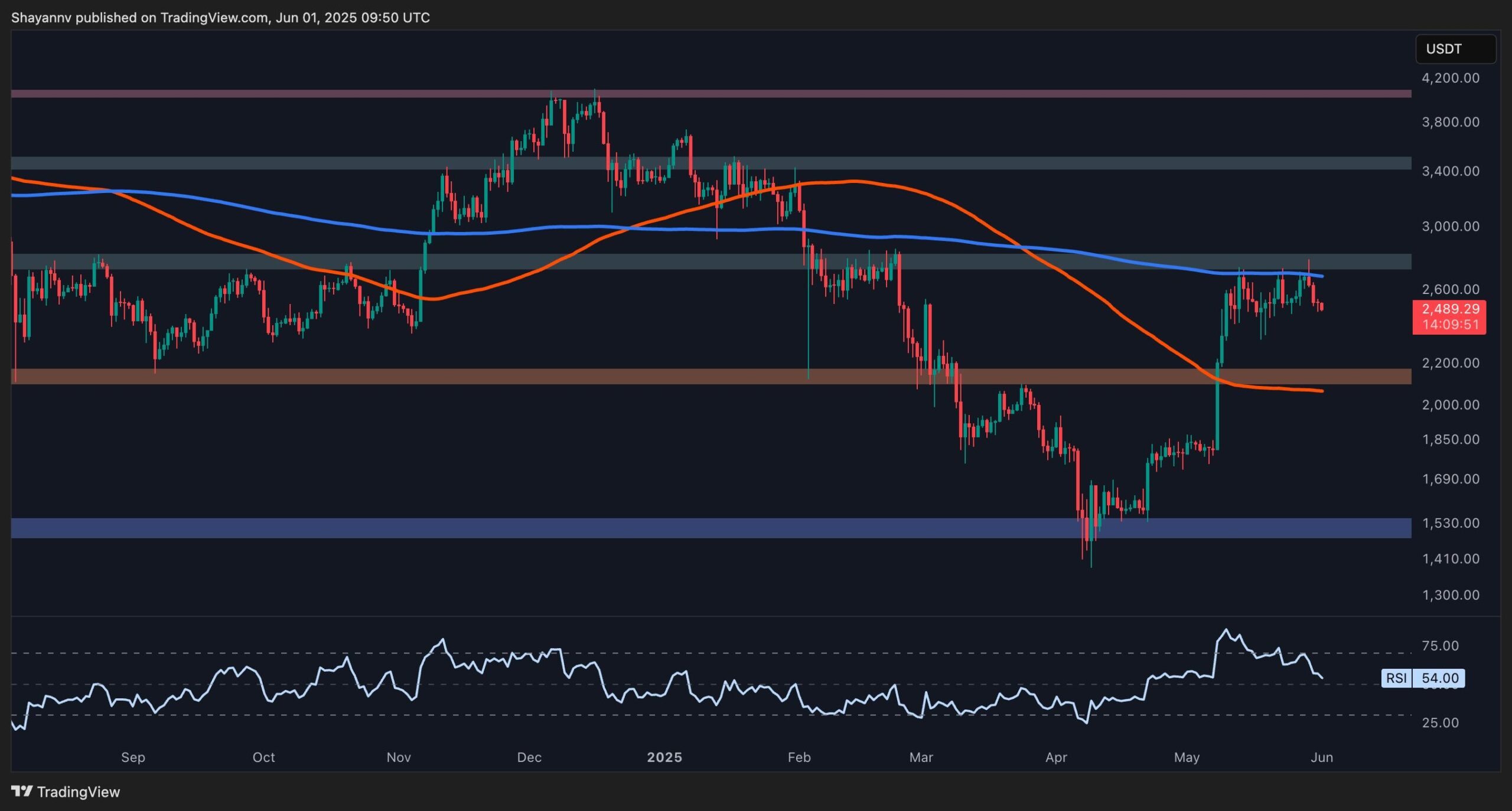 Ethereum continues to face strong resistance near the critical 200-day moving average at $2.7K, with recent price behavior hinting at a potential bearish reversal.