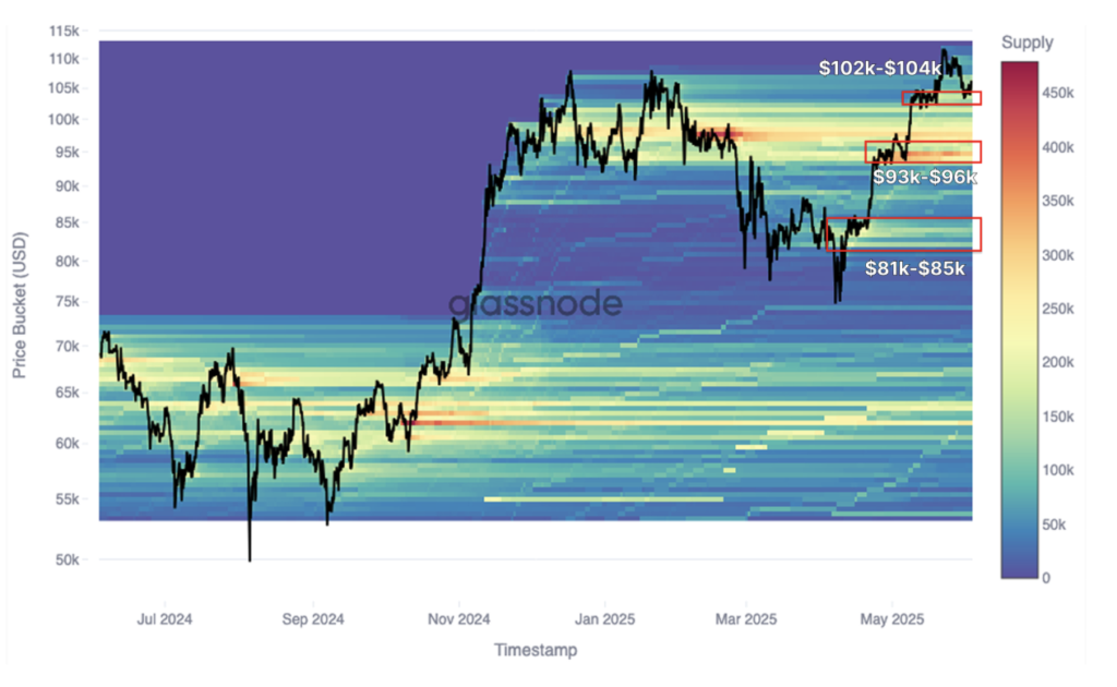Một đợt tăng giá chuẩn sách giáo khoa của Bitcoin, được thúc đẩy bởi nhu cầu giao ngay mạnh mẽ, hoạt động chốt lời từ các nhà đầu tư dài hạn và sự gia tăng rủi ro vĩ mô, đã đưa tài sản này giảm hơn 10% so với mức cao nhất mọi thời đại (ATH). Đỉnh điểm của đợt giảm giá vào ngày 5 tháng 6 chứng kiến hơn 875 triệu đô la bị thanh lý vị thế long chỉ trong một ngày – minh chứng rõ ràng cho việc thị trường đang trải qua quá trình giảm đòn bẩy mạnh mẽ. Tổng cộng, hơn 1,9 tỷ đô la đã bị thanh lý trong tuần qua, giúp thị trường reset lại hệ thống đòn bẩy. Cấu trúc kỹ thuật cho thấy đợt tăng giá của BTC được hỗ trợ bởi nhu cầu thực tế, như biểu hiện qua chuỗi tăng giá từng nấc do giao dịch giao ngay dẫn dắt, với các vùng tích lũy quan trọng hình thành ở mức $93,000–96,000 và $102,000–104,000.