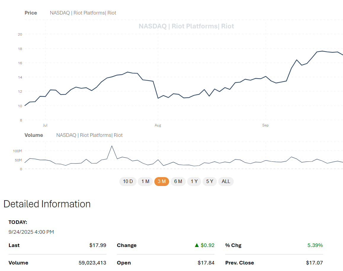 — Riot Platforms, Inc. (@RiotPlatforms) September 24, 2025